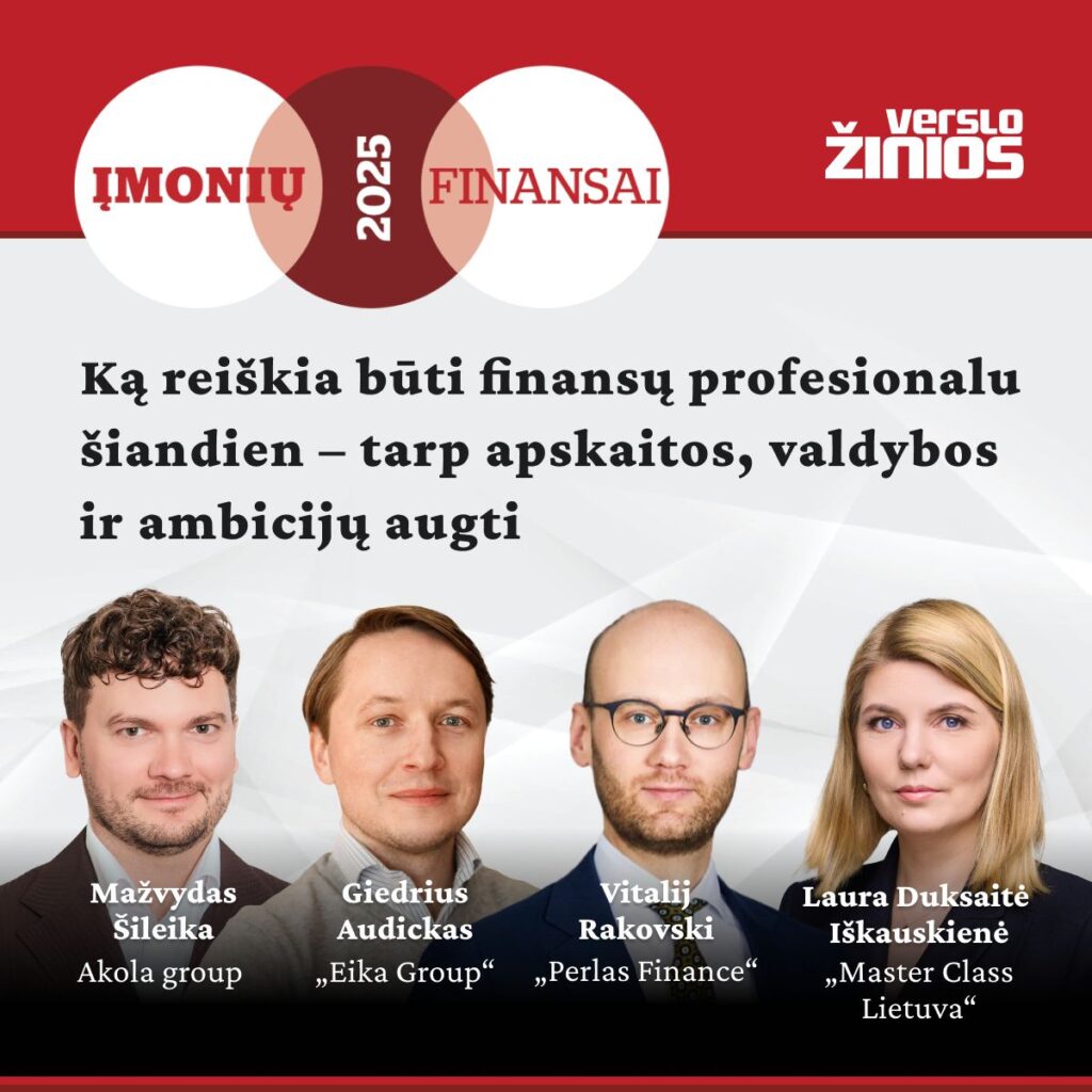 Ko akcininkai tikisi iš finansų ekspertų, kokius lūkesčius finansų vadovai turi sau, kokios karjeros dar norėtų ir ką jau pasiekė, už ką yra dėkingi likimui ir sau patiems pasikalbėsime Verslo žinios konferencijoje „Įmonių finansai 2025” su Mažvydu Šileika, Vitalij Rakovski ir Giedriumi Audicku.